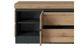 Program nábytku Corte – moderní minimalistický styl s rovnými šedými liniemi dává vyniknout přirozeným tónům dubového dřevodekoru. Můžete si tak zařídit byt moderně a zároveň si zachovat útulnou atmosféru, kde se cítíte prostě doma.