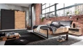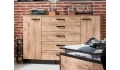 Kolekce Detroit – inspirujte se městským industriálním stylem a buďte prostě in. Útulné tóny dřevodekoru prkenný dub doplňuje černá podnož, díky které nábytek působí velmi vzdušně. Postel zaujme polstrovaným čelem v polštářové optice. Vnější rám skříně může být doplněn okrasným paspartovým rámem. Do přídavné komody snadno uložíte doplňky, drobné prádlo nebo třeba povlečení.