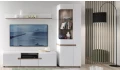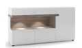 Nábytkový program Linate – stylový nábytek se zaoblenými liniemi působí velmi elegantně. Dřevodekor dub Truffel vytváří s lesklými bílými plochami příjemný kontrast a dokonale se hodí do moderně zařízeného bytu. Rohové panoramatické prosklení navíc dodá interieru vzdušnou atmosféru.