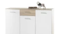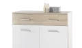 Univerzální komody z kolekce Manolo s mnoha vnitřními policemi jsou ideálně využitelné také jako přehledný botník. Vyrobeny v oblíbené kombinaci dubu sonoma a bílé barvy.