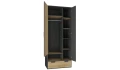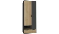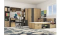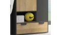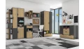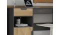 Nábytková sestava Nano obsahuje množství praktických úložných prostor a zaujme svým vzhledem v kombinaci útulného dubového dekoru a grafitové barvy. Hodí se pro vybavení pokoje dětí, teenagerů i dospělých.