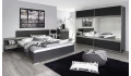 Kolekce moderního ložnicového nábytku Penzberg je doplněna zajímavými aplikacemi v imitaci šedého betonu a polstrováním zadního čela u manželské postele. U postele oceníte i prakticky zavěšené noční stolky. Vnitřní prostor šatní skříně je snadno přístupný díky posuvným dveřím a můžete ho doplnit o další vnitřní police.