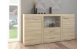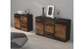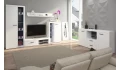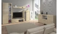 Sestava nábytku Rumba v trendovém stylu nabízí praktické úložné prostory i otevřené přihrádky pro umístění dekoračních předmětů nebo elektroniky. Do obývacího prostoru můžete umístit nejen obývací stěnu, ale i přídavnou komodu, díky níž získáte další úložné místo.
