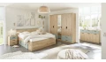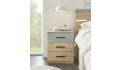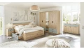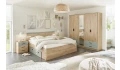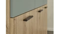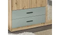 Ložnicový program Savina – moderní nábytek v kombinaci dub artisan s barvou šalvějová zelená vytvoří v prostoru ložnice útulnou a klidnou atmosféru, kde se vám bude dobře spát. Manželská postel má zádové čelo doplněno osvětlením a v dolní části najdete pratické úložné zásuvky, které jsou přístupné z bočních stran. Oceníte i noční stolky se zvýšenou konstrukcí a třemi zásuvkami nad sebou. Komoda se zásuvkami najde své místo nejen v ložnici, ale i v obýváku, jídelně anebo třeba předsíni. Skříňka nabízí tři otočné dveře a nad nimi tři zásuvky pro přehledné ukládání prádla, psacích potřeb anebo dalších věcí. Šatní skříň se zrcadlem má šířku 225 cm a za 5 otočnými dveřmi najdete šatní tyče a police, navíc pro ukládání drobného prádla jsou zde 4 široké zásuvky. Další vnitřní police lze doobjednat samostatně.