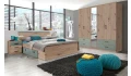 Postel s nočními stolky Savina 180x200 cm, dub artisan/šalvějová, s osvětlením