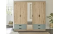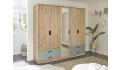 Šatní skříň se zrcadlem Savina 225 cm, dub artisan/šalvějová