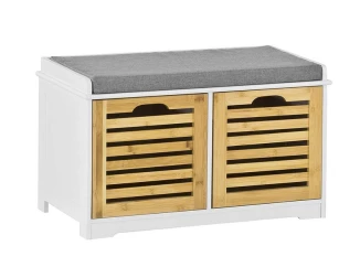 Předsíňová lavice s přihrádkou na boty Enya, bílá/černý sedák