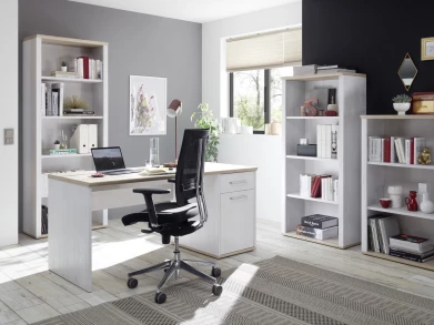 Pracovna či kancelář je místnost, kde chceme být soustředěni, nerušeni a cítit se příjemně, aby nám šla práce od ruky. Je třeba myslet na úložný prostor, prostorný stůl a pohodlné sezení. Mějte svou kancelář na úrovni. Kancelářská sestava Vám ulehčí a urychlí vybavení pracovny.