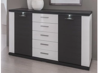 Široká komoda Caracas typ 21, grafit/bílý lesk, s osvětlením