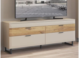 TV skříňka s osvětlením Beatrix, bílá lesk/dub viking